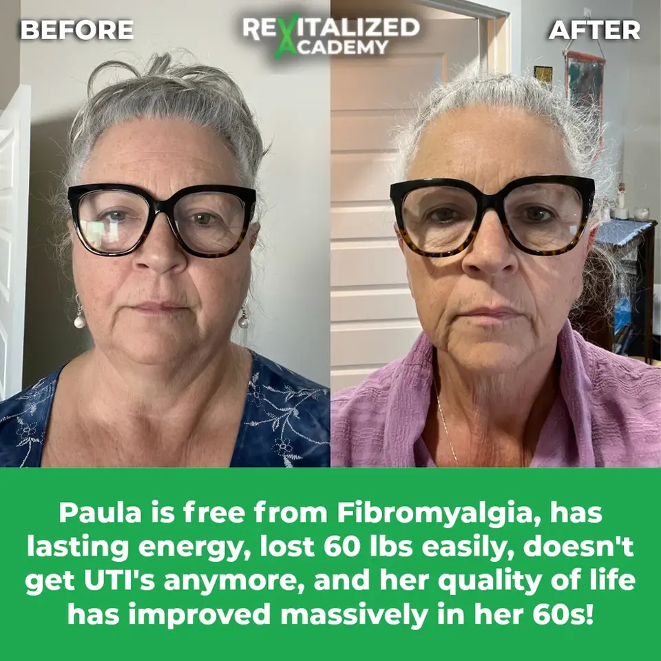 Paula is free from Fibromyalgia, has lasting energy, lost 60 lbs easily, and her quality of life has improved massively.